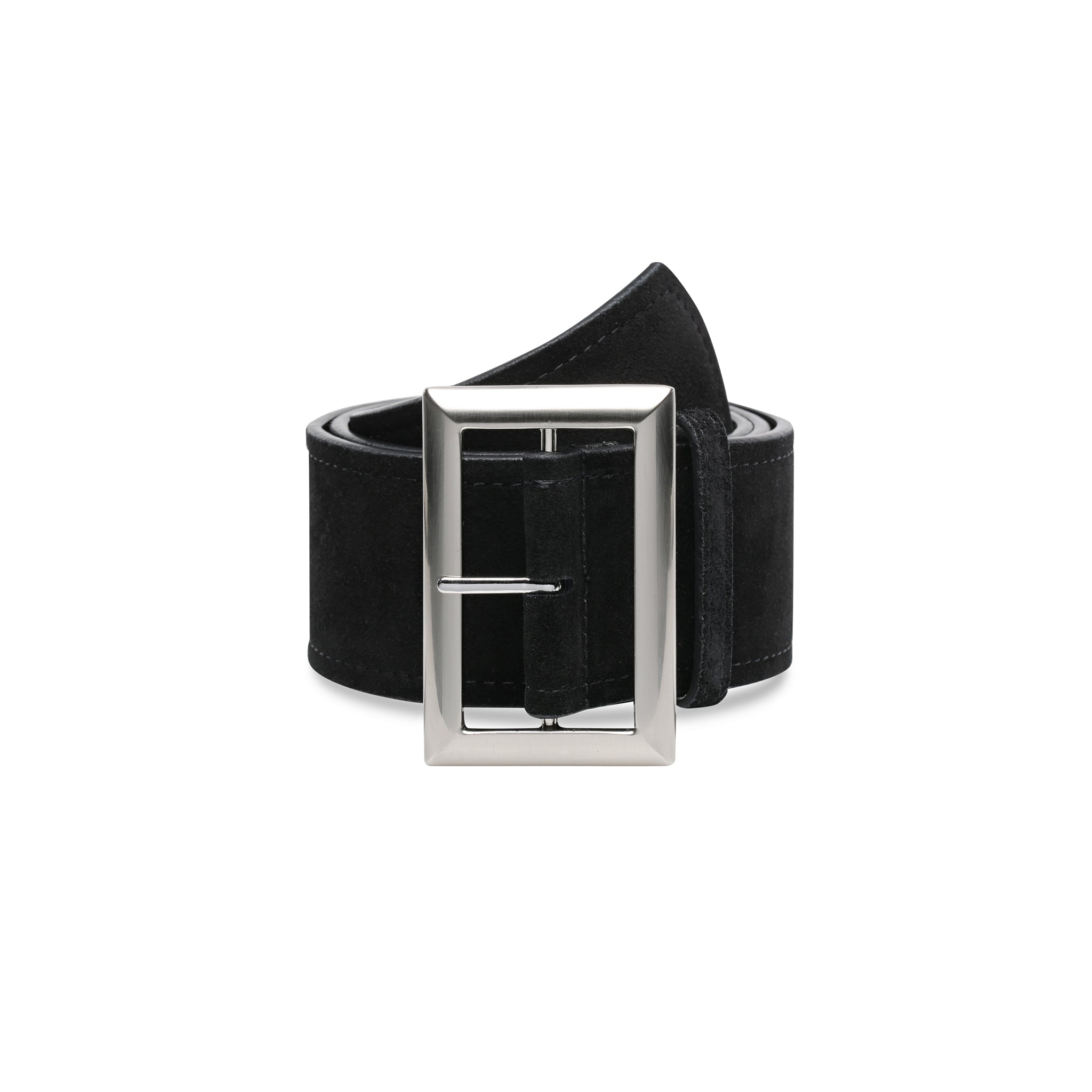 Command attention with this bold and modern black leather belt, designed to redefine silhouettes with architectural precision. Featuring a sleek, wide strap and a dramatic high-shine rectangular buckle, this piece brings a striking, sculptural element to any look. Its glossy finish and structured design effortlessly cinch the waist, adding polish and power to both classic tailoring and contemporary ensembles.