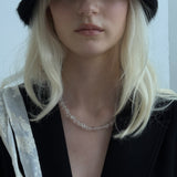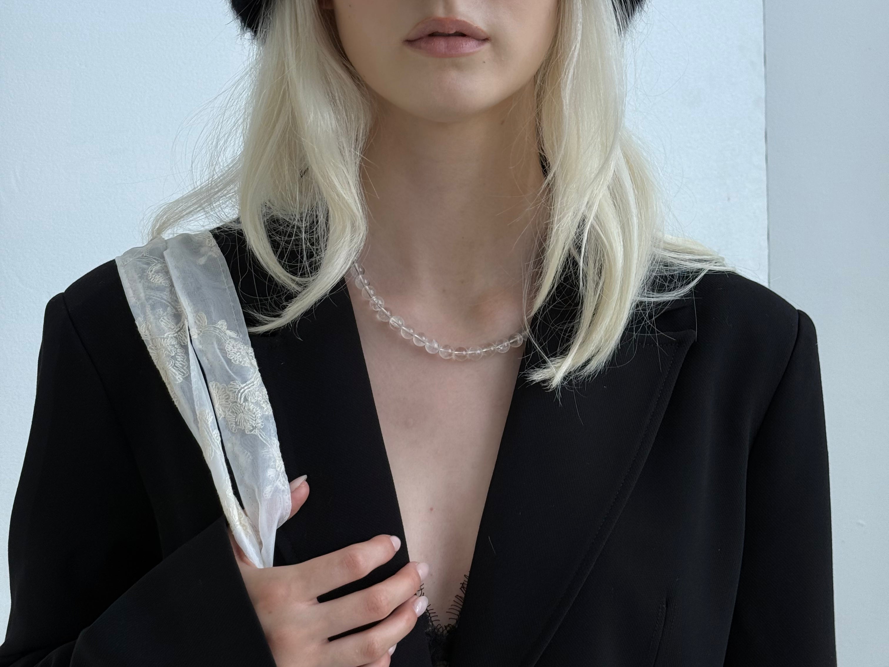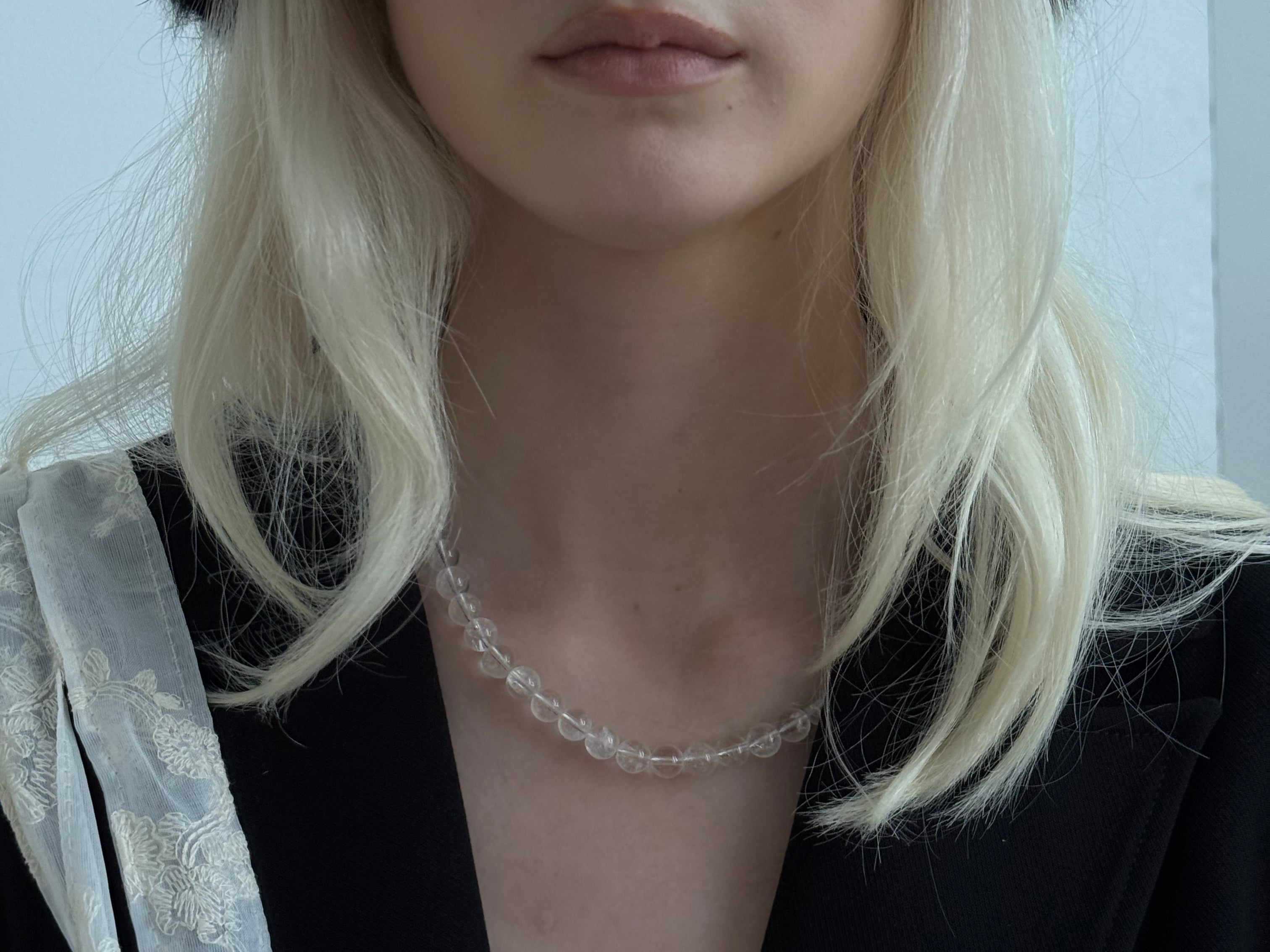 The Glass Bead Necklace in Clear is a modern minimalist piece designed to catch and reflect the light. Featuring a strand of spherical glass beads with a high-shine finish, it layers seamlessly with gold or silver jewellery or makes a subtle statement worn solo.