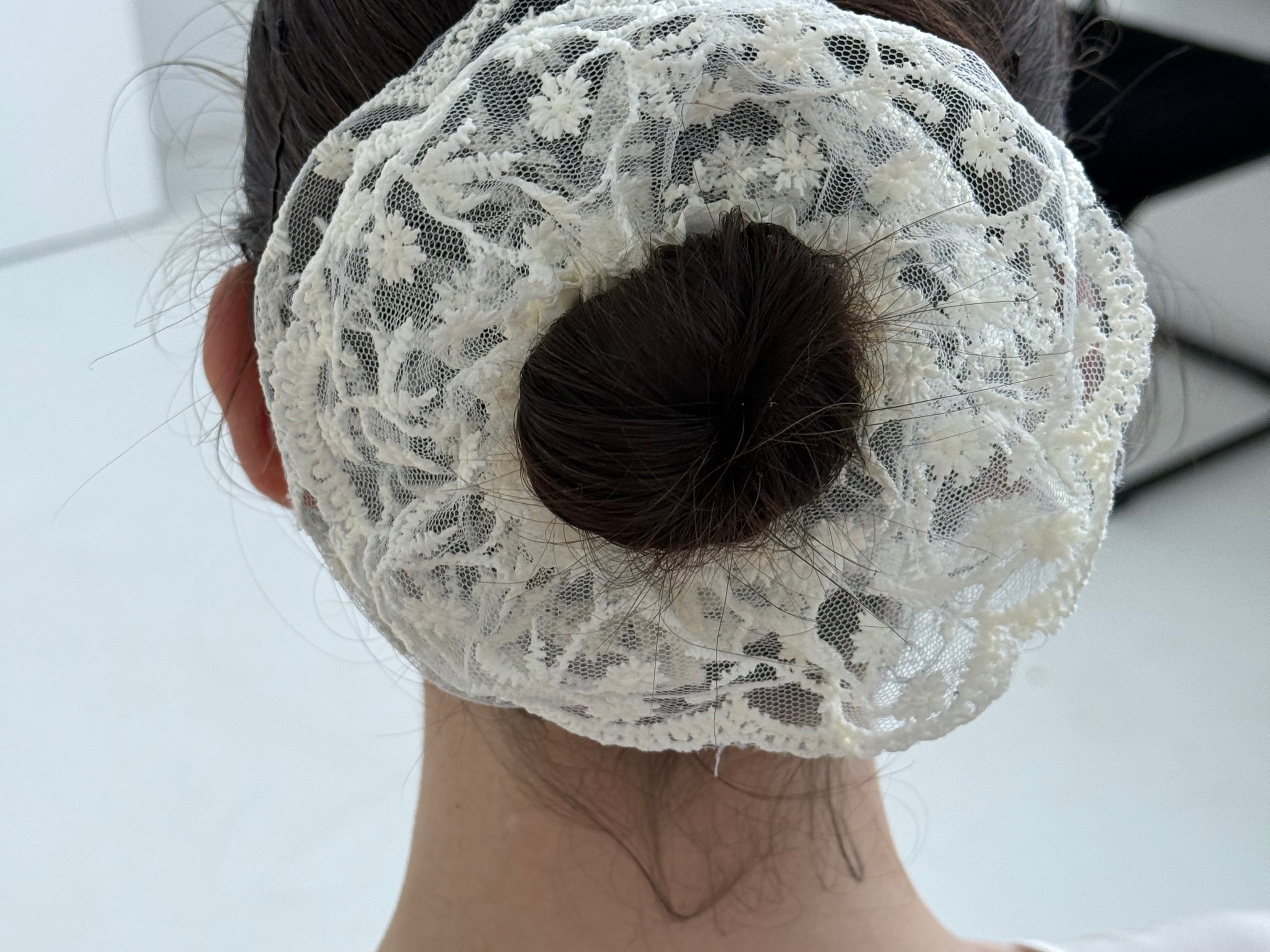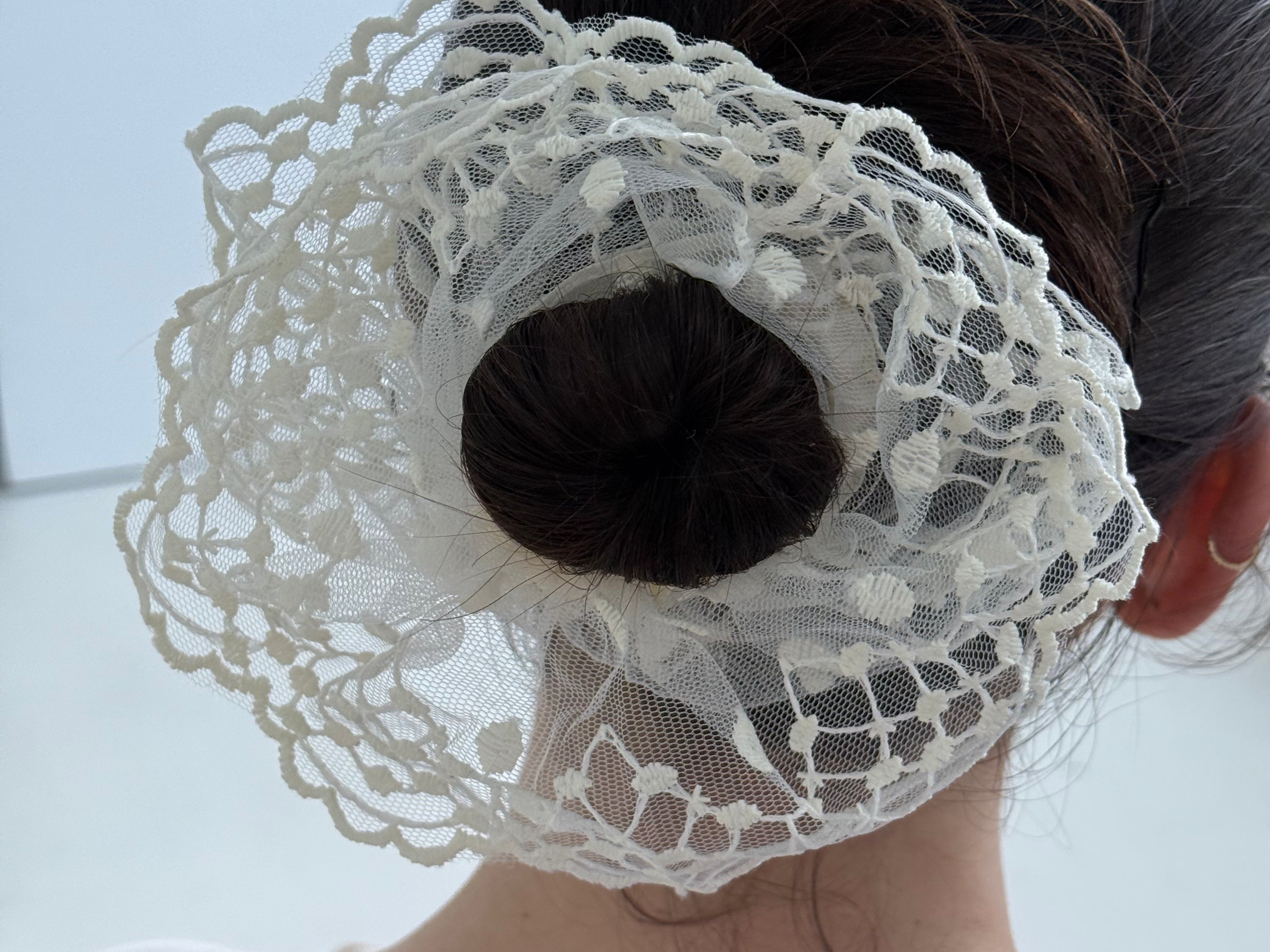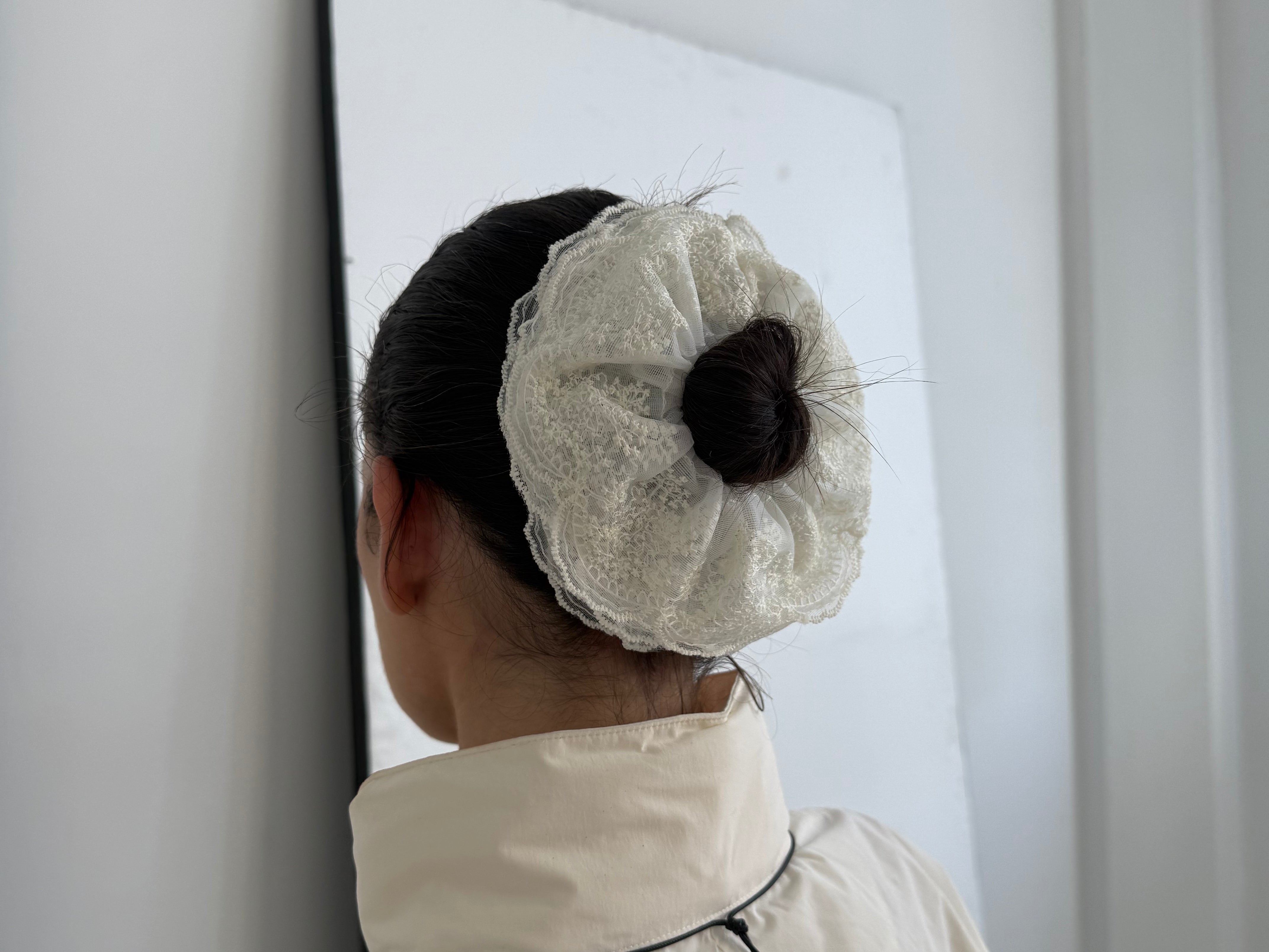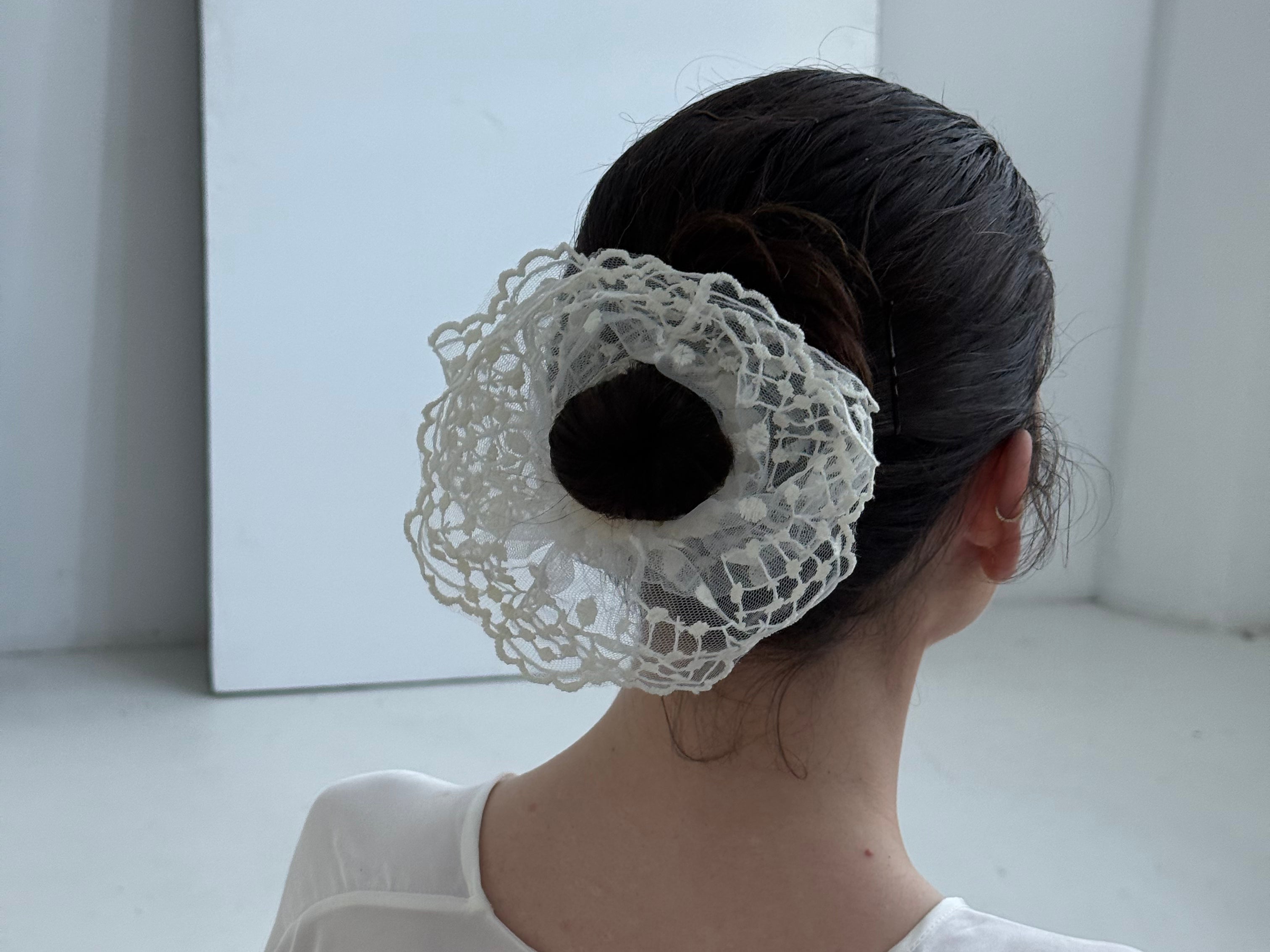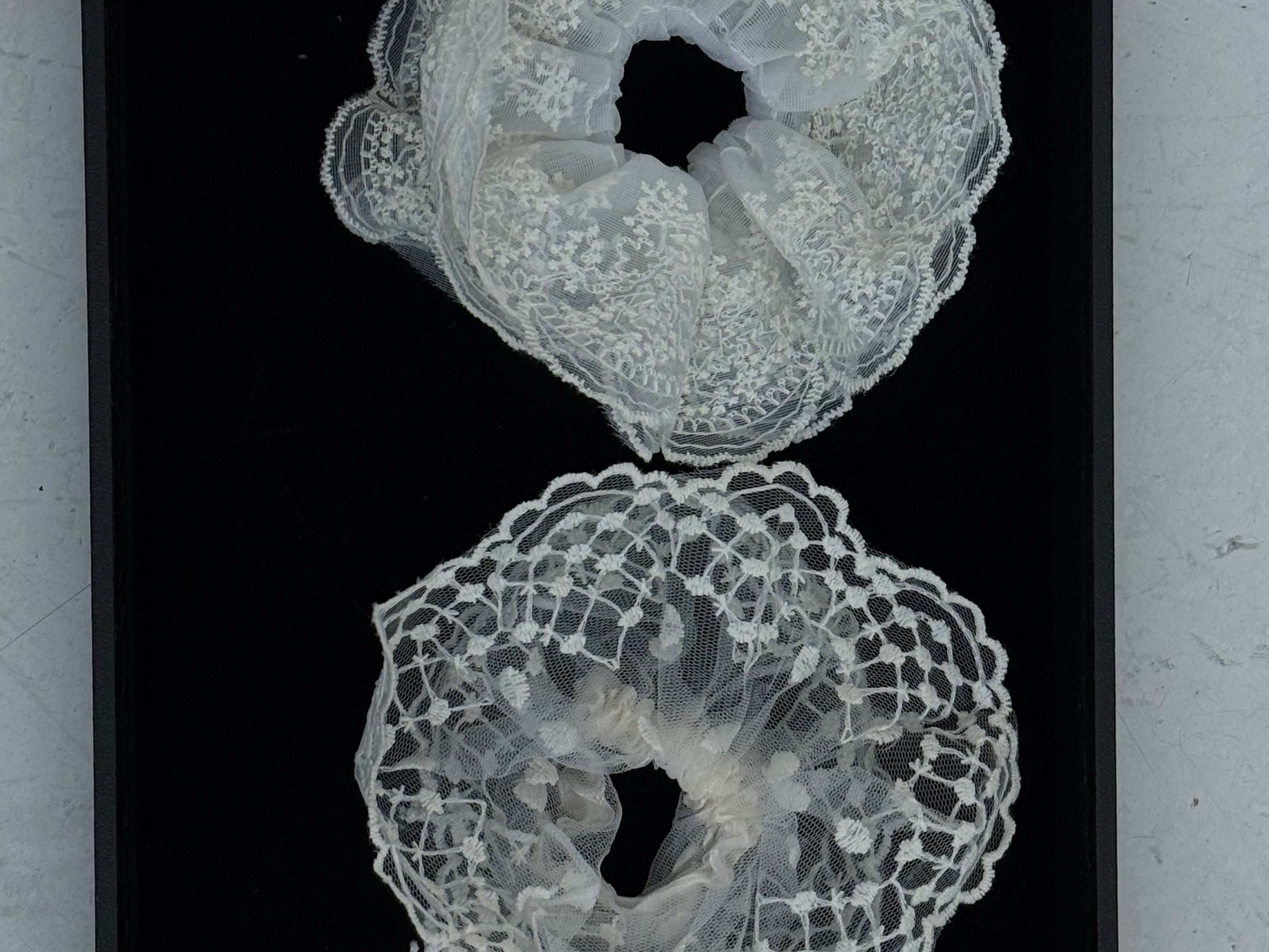 - Set of lace scrunchies in ivory tones