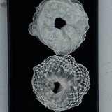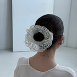 From our Cote Blanche collection. Minimal, snag‑safe hair ties for secure hold and a clean finish. Crafted from delicate lace with scalloped edges, these voluminous scrunchies are perfect for dressing up a ponytail, bun, or wrist. This set includes a curated set of two silhouettes to mix, stack, and style.