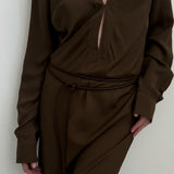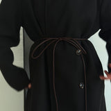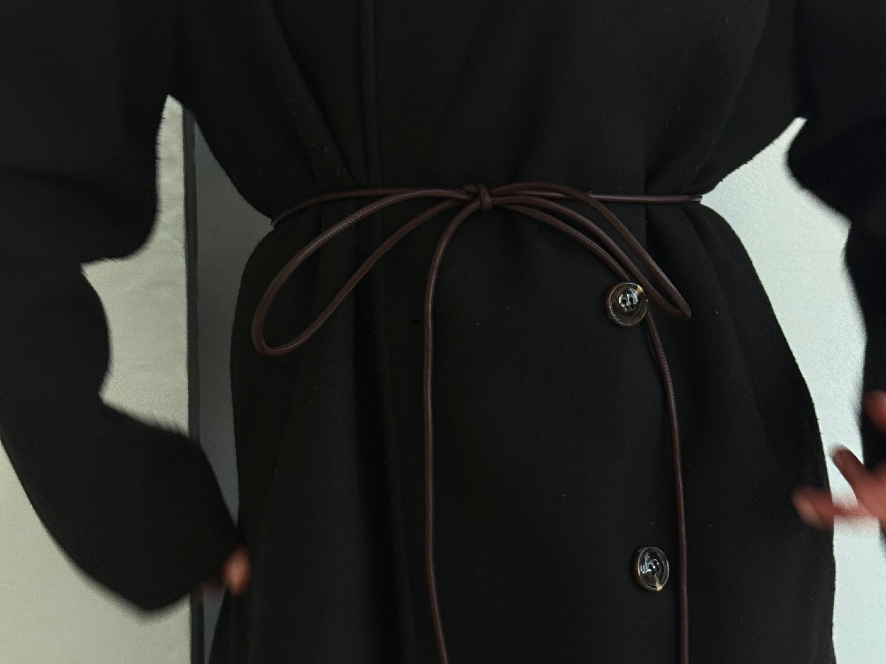 The Leather Rope Belt in Espresso is a minimalist styling piece designed to cinch dresses, coats, or tailoring with effortless ease. Crafted from smooth leather with slender proportions, it ties neatly into a bow or knot for versatile wear.
