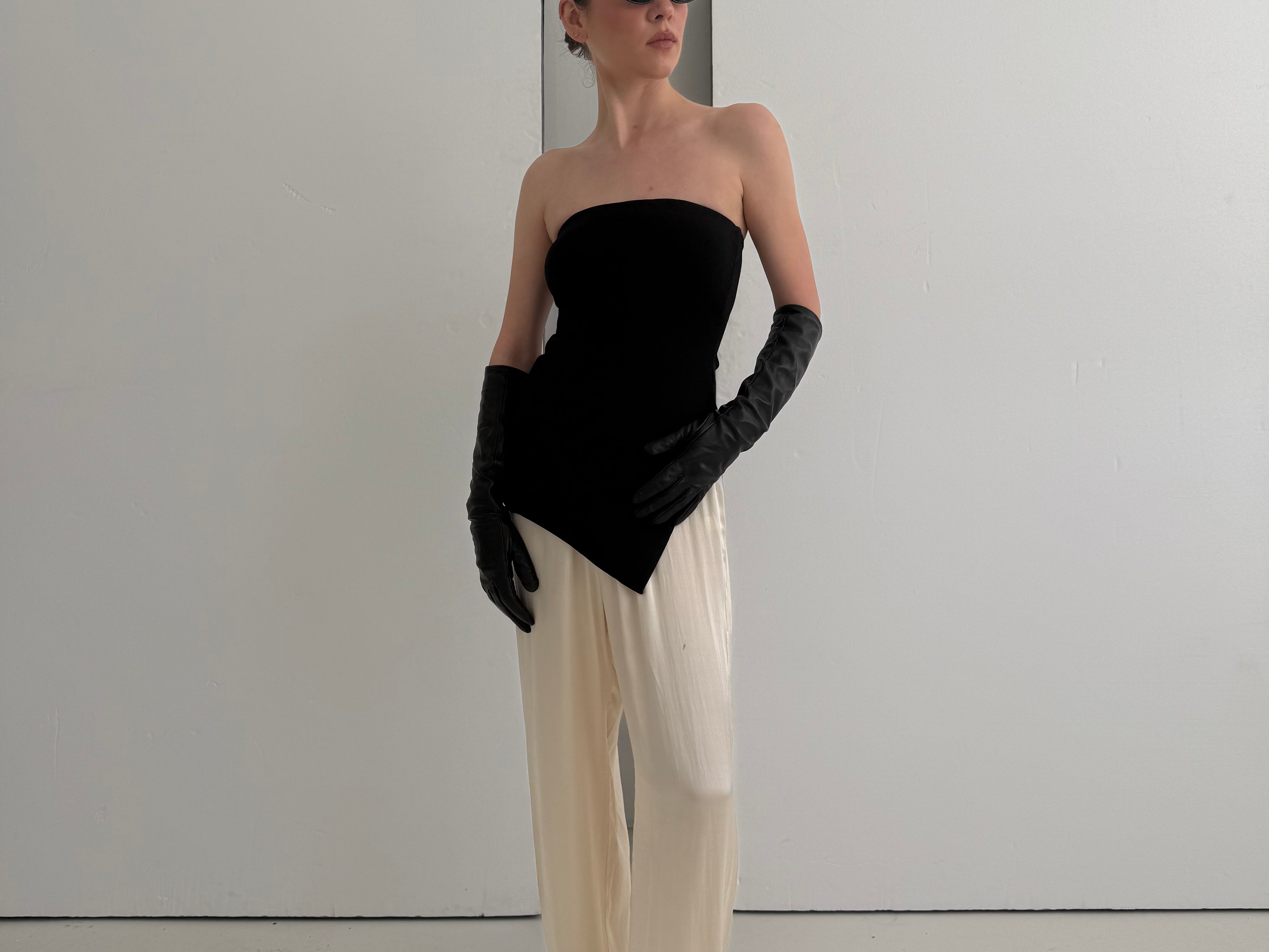 Long Leather Gloves | Black