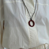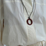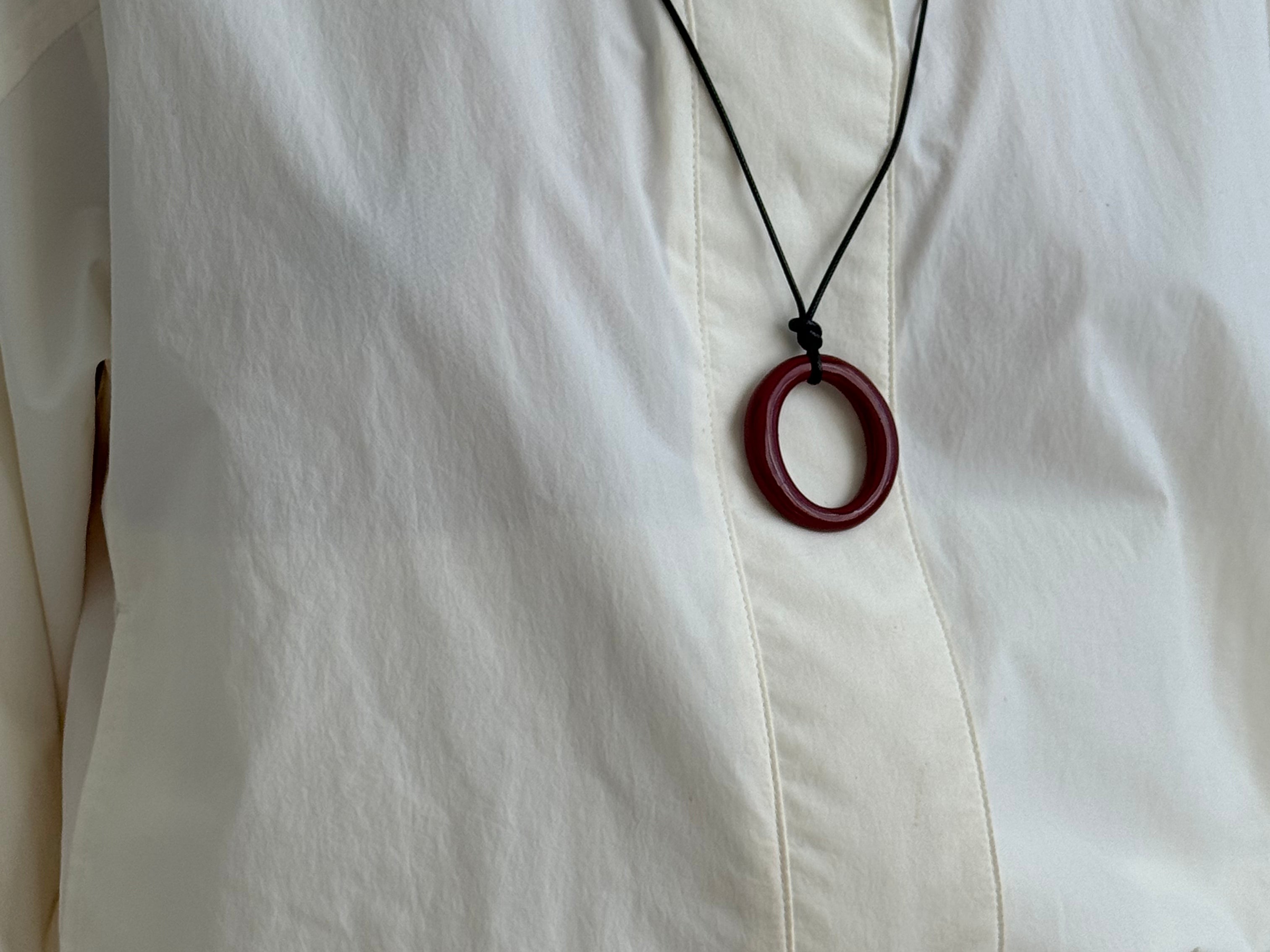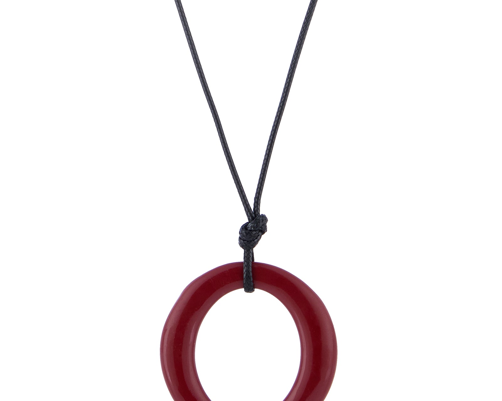 The Resin Halo Pendant Necklace in Red is a bold yet minimal piece. Featuring a smooth resin circle pendant suspended from an adjustable cord, it adds a modern pop of colour to your look.
