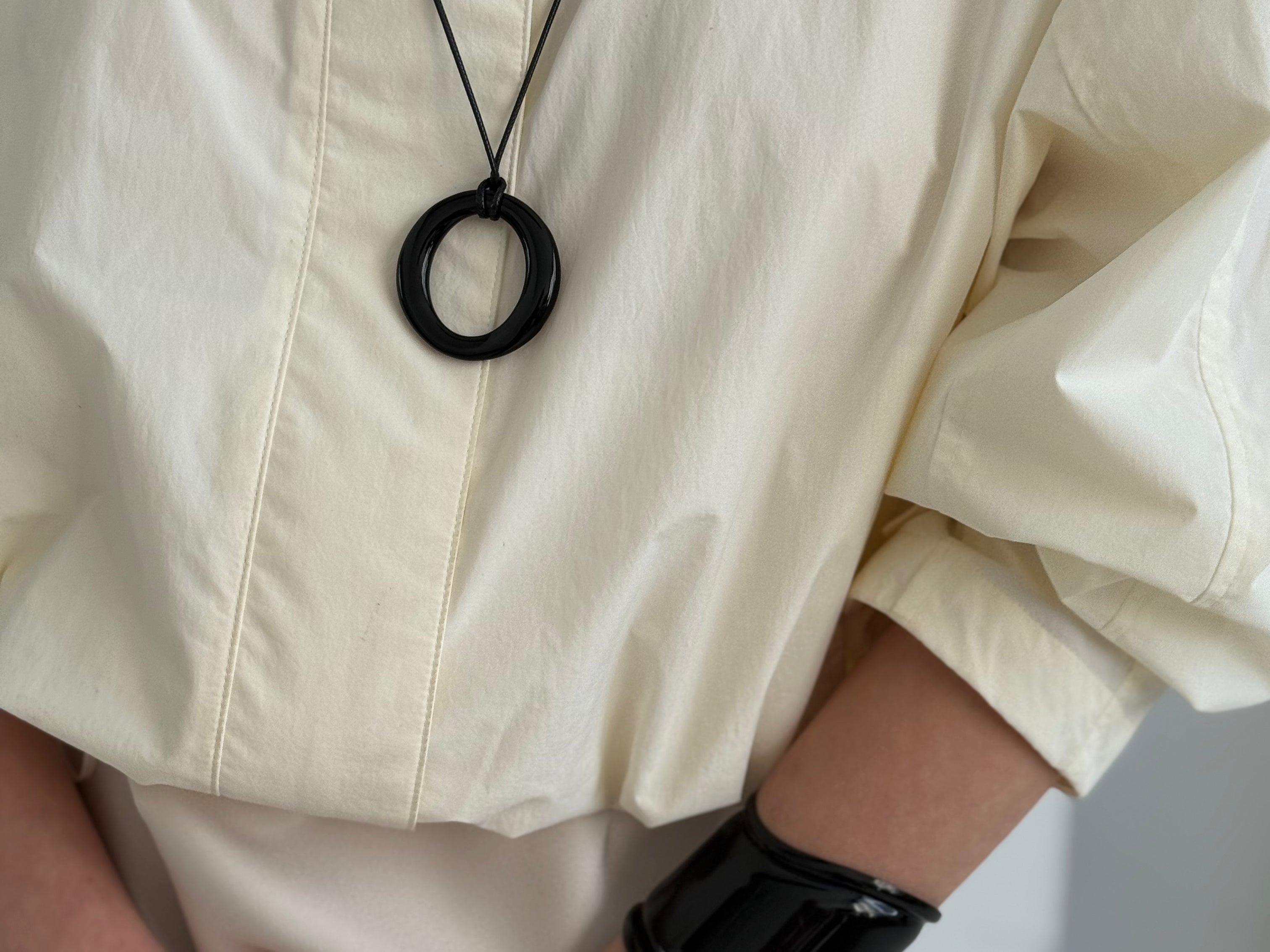 The Resin Wave Cuff in Black is a bold statement piece defined by its fluid curves and high-shine finish. With a wide, contoured silhouette, this open cuff wraps the wrist in modern elegance, making it perfect for standalone wear or layered styling.