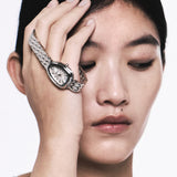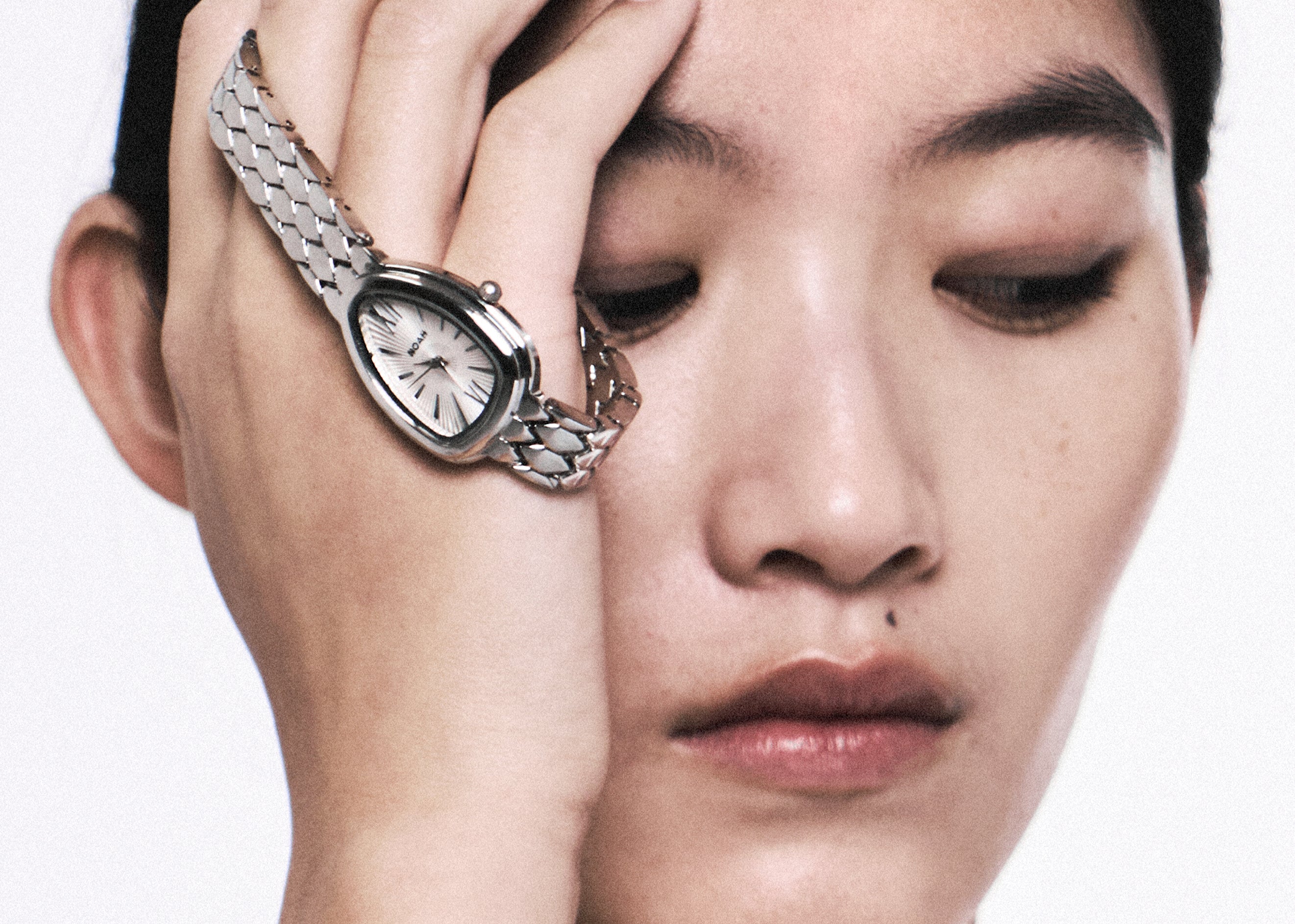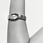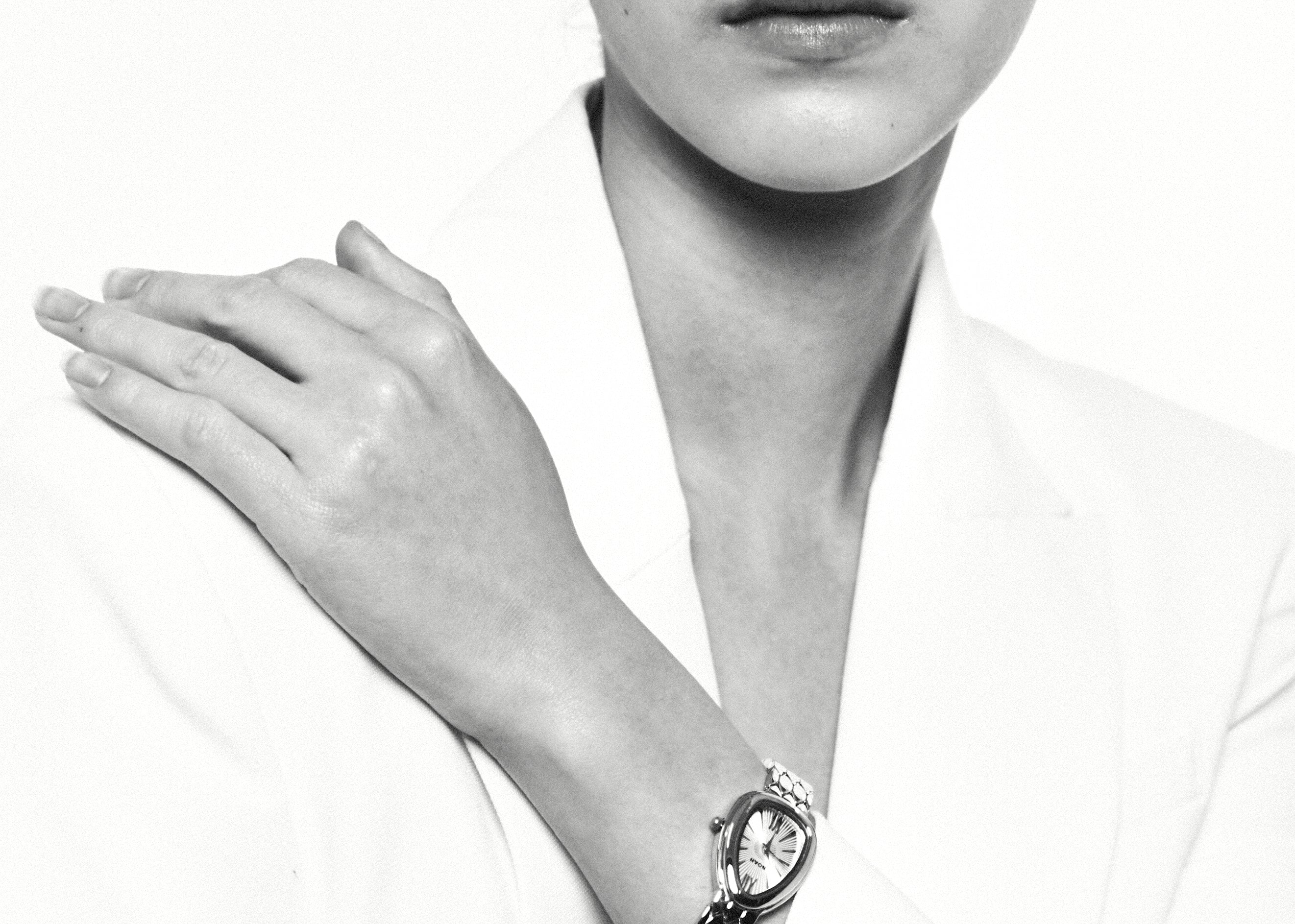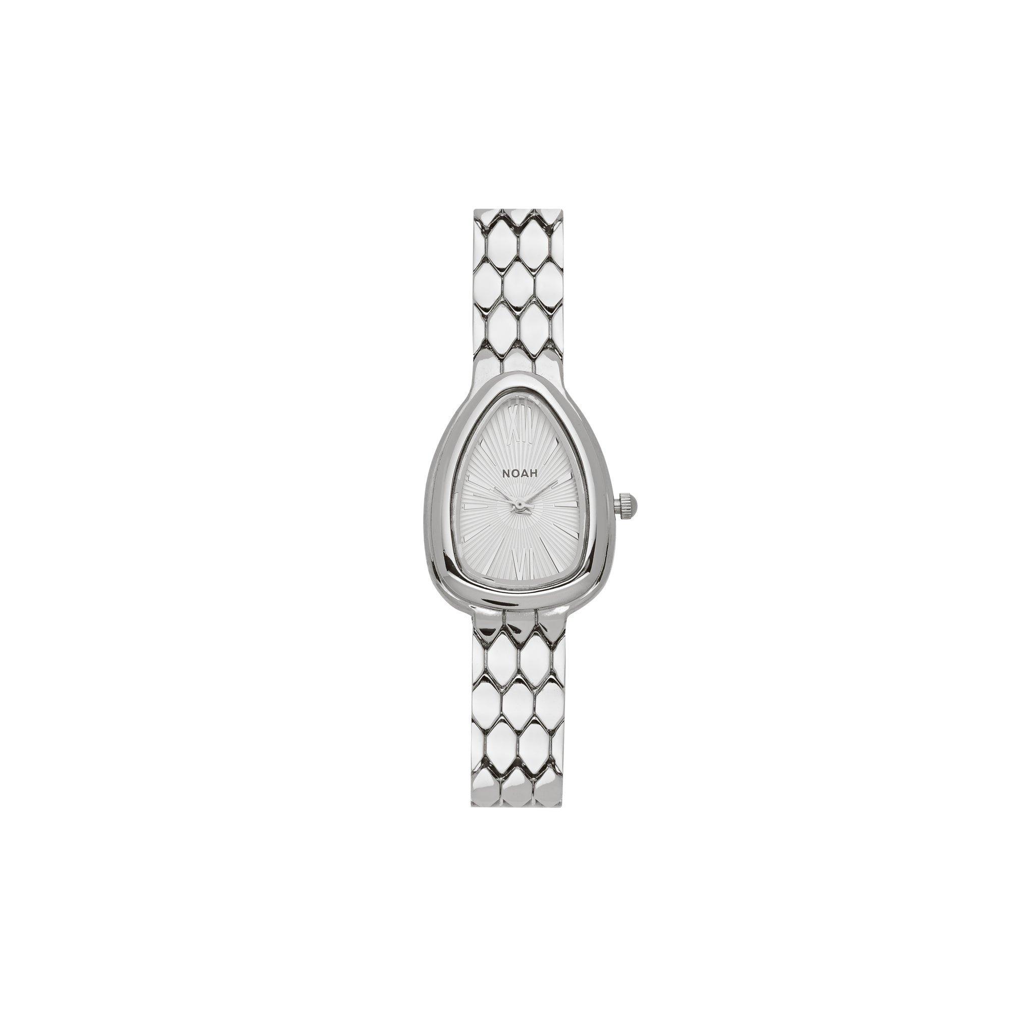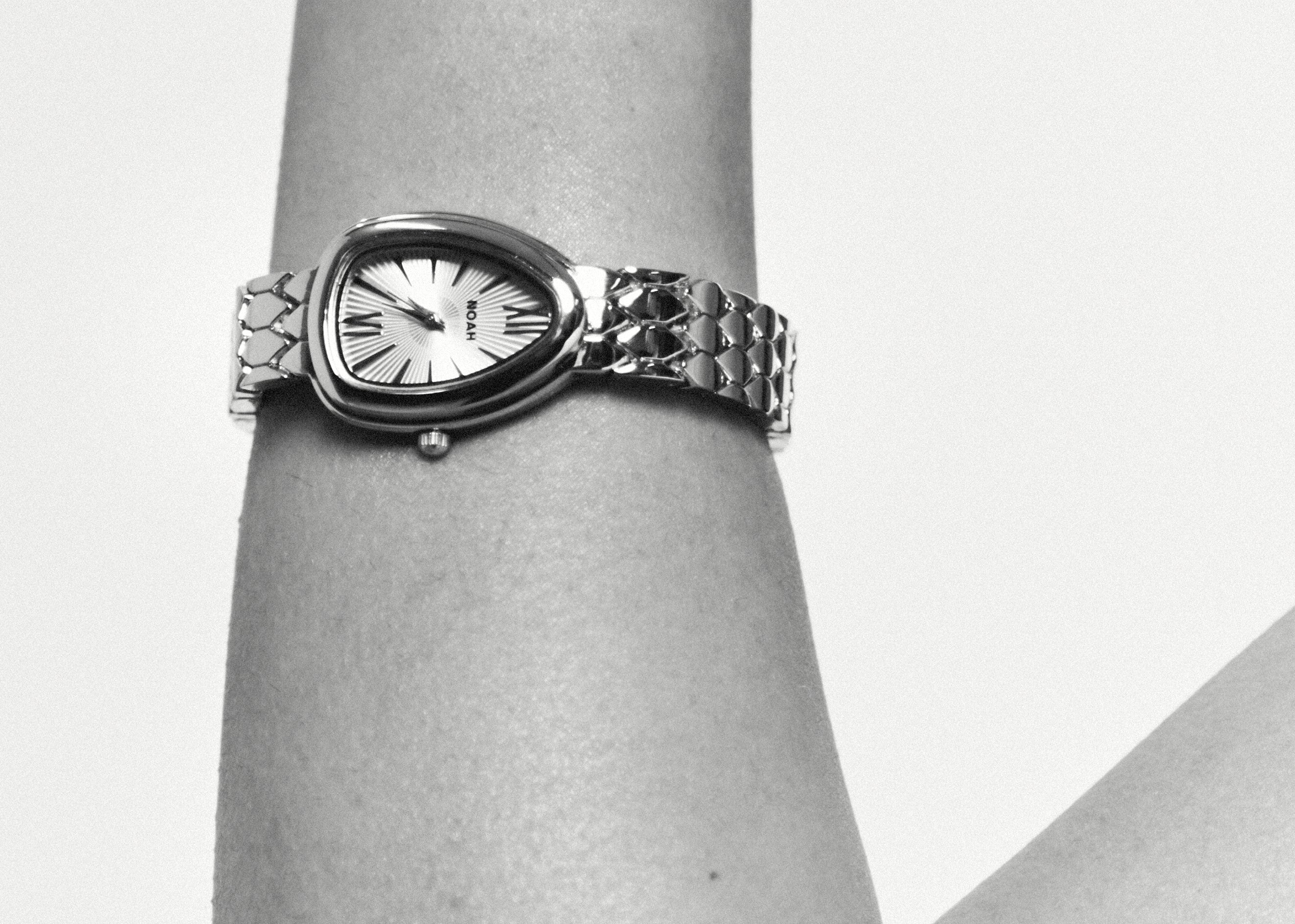 The Noah timepiece is a refined everyday watch with a sculptural, teardrop-shaped case and a polished link bracelet that sits like jewellery on the wrist. Finished in sleek silver, it’s designed to layer seamlessly with your existing pieces while still making a statement on its own.